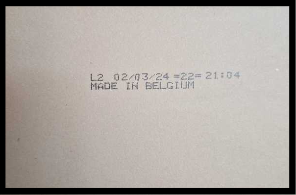 Si usted tiene un suelo de este material y trae una tabla nosotros intentamos encontrar su mismo modelo, por detras deberá aparecer algo parecido a la siguiente imagen: