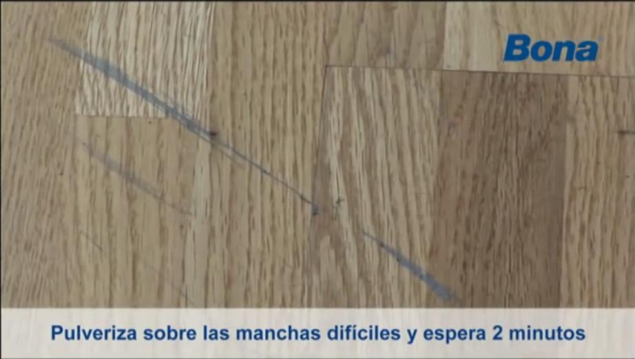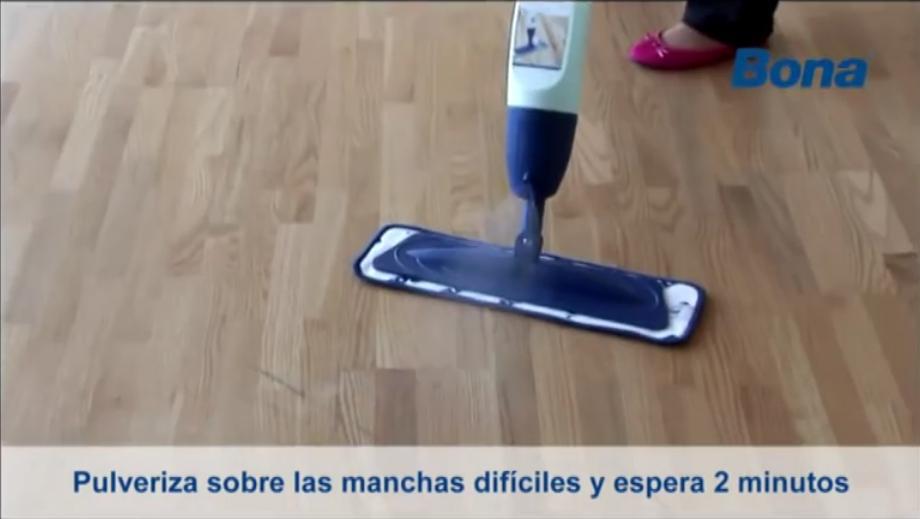 Para manchas dificiles pulverizar limpiador sobre ellas, esperar 2 minutos, a continuación pasar Spray Mop.