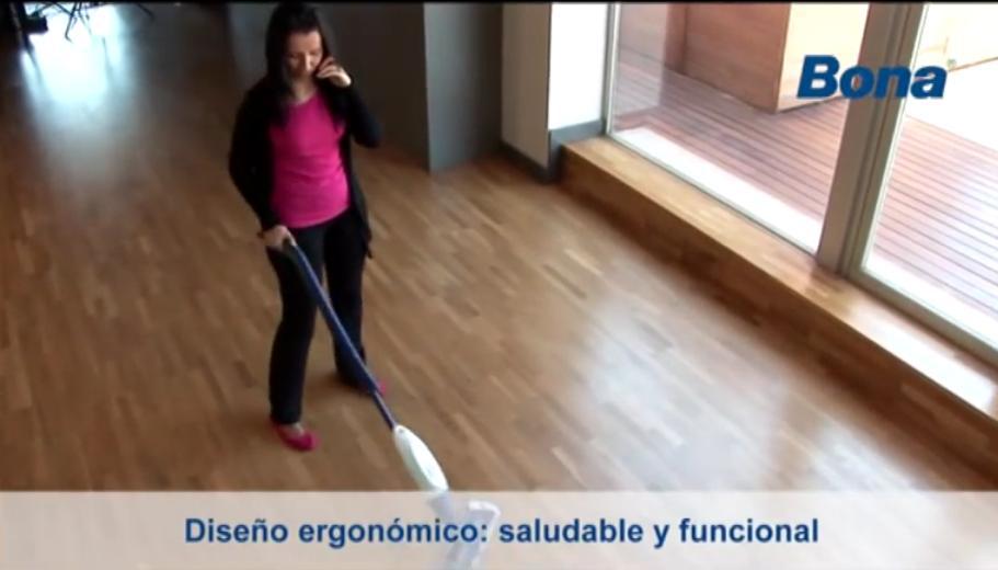 Pasar Spray Mop por toda la superficie y pulverizando el limpiador.